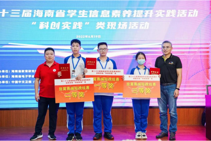 2022年6月19日,由华东师范大学澄迈实验中学协办的第二十三届海南省学生信息素养提升实践活动“科创实践”类现场活动(三亚站无人机专项)比赛中,我校包揽了无人机障碍编程挑战赛项目前三名金银铜奖;无人机蜂舞挑战赛获海南省第二名、第四、第五名;无人机障碍飞行赛获两银三铜。