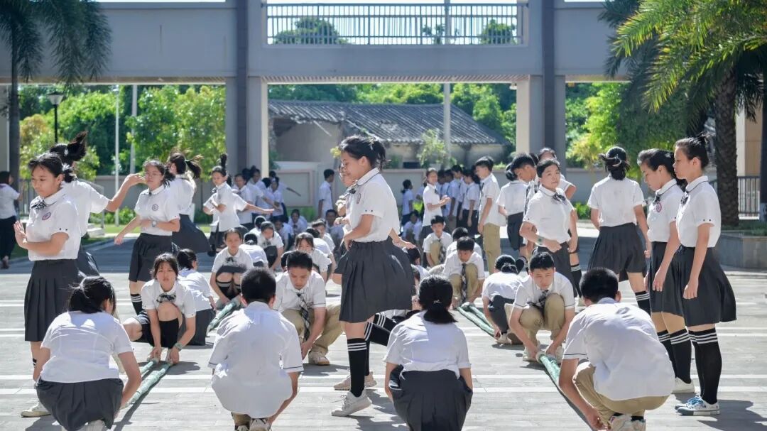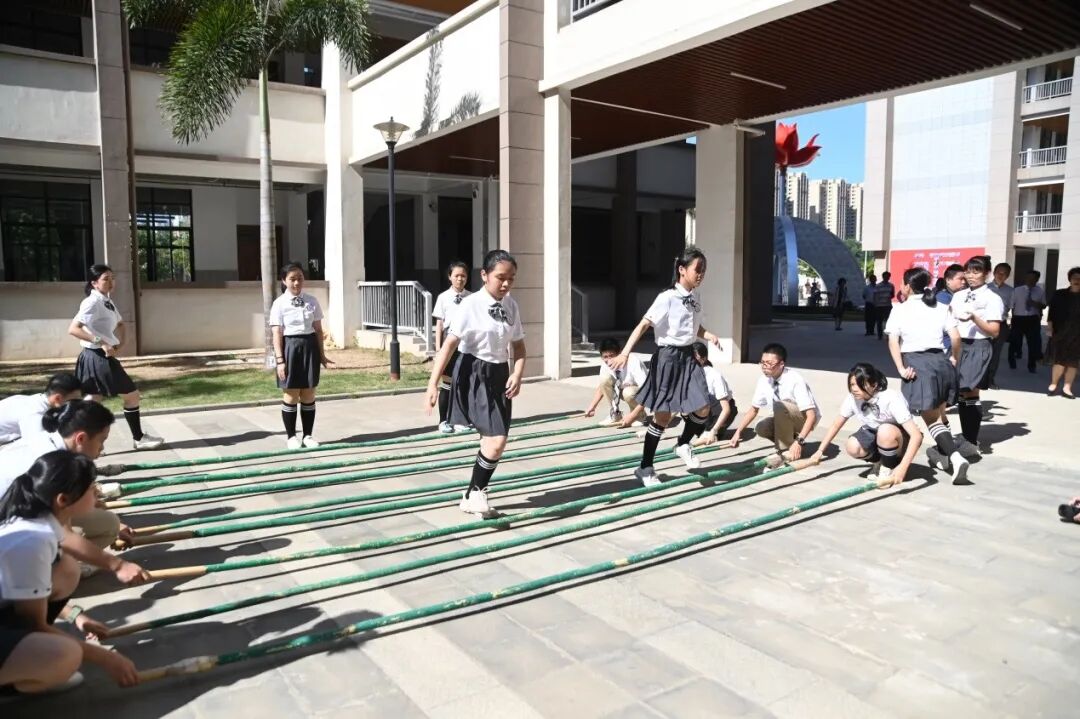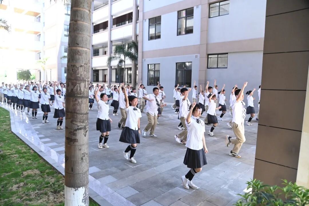 在调研过程中,恰逢学校的阳光体育大课间时间,千名华迈学生正在做学校的自编健身操《你笑起来真好看》、《我们都是追梦人》及极具民族特色的竹竿舞,动感的旋律、灵动的舞蹈、饱满的热情展现着华迈学子朝气蓬勃、淳朴阳光的靓丽色彩,给调研组留下了深刻的华迈印象。