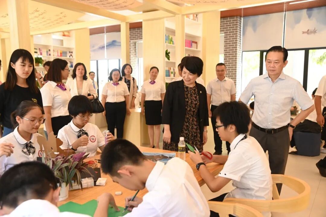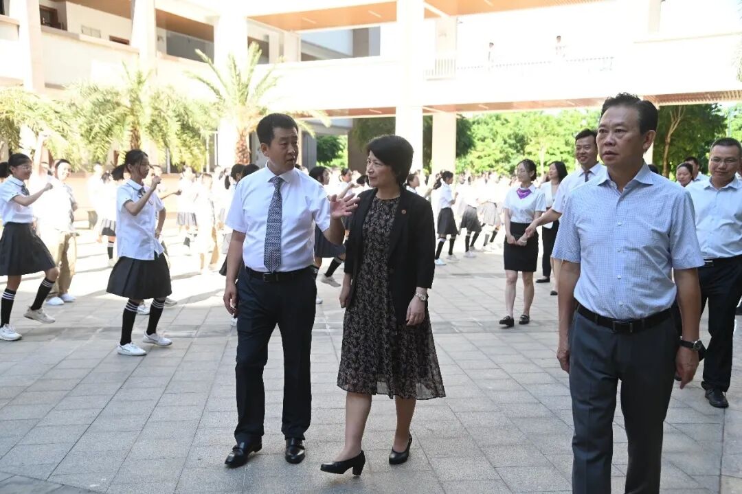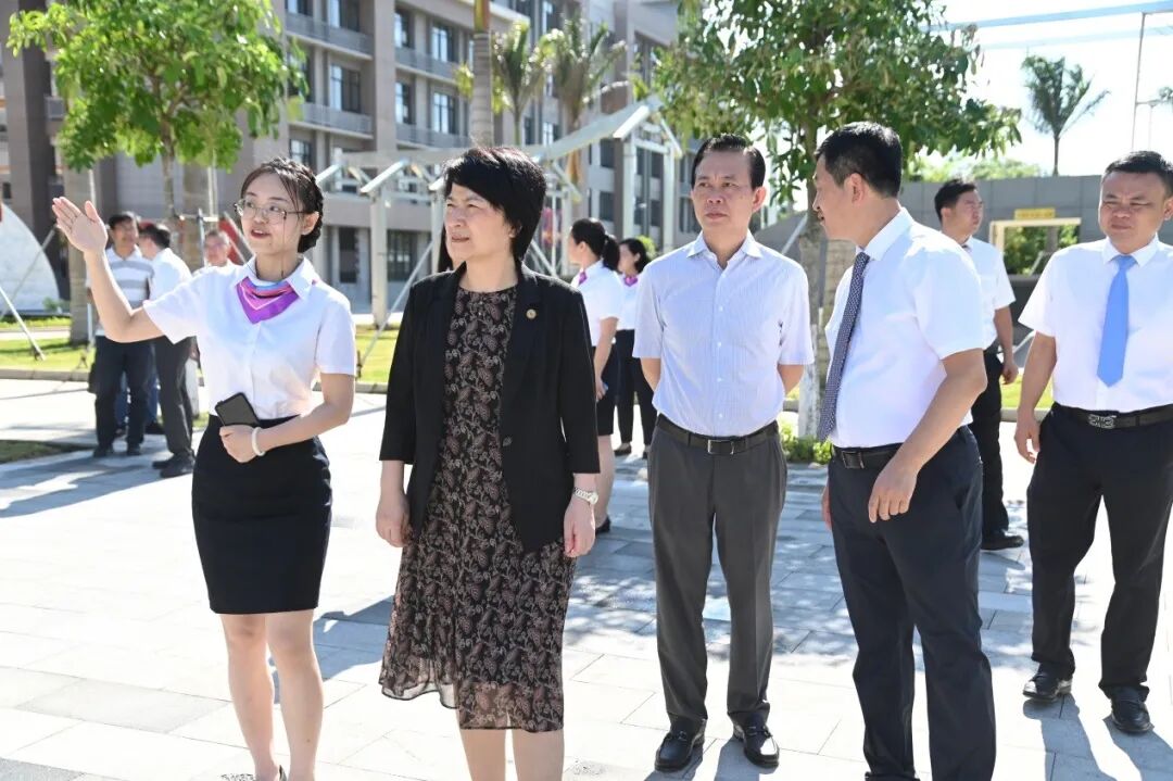 在参观调研过程中,澄迈县委书记吉兆民向各位来宾介绍了华迈实验中学的建设发展布局、师资队伍配备、政府大力支持、办学取得成绩等方面内容,让各位来宾对华迈的茁壮成长有了更深入的了解。