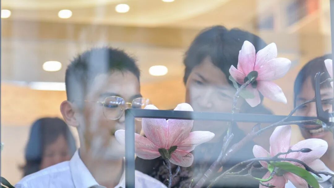来到主题雕塑《妙笔生花》前,张喜忠校长介绍了雕塑传达的美好含义:雕塑整体造型是一支架在两块玉璧之上的、笔端如莲花绽放的毛笔。毛笔寓意文脉绵延,盼望华迈人都要写好人生每一笔,走好人生每一步;莲花寓意谦谦君子,质洁如莲;两块玉璧寓意教学相长,家校合育,珠联璧合;玉璧上刻着海南的百家姓,寓意华迈学子都能百家争鸣,各美其美,和而不同;同时拓刻了百位书法家关于“心、新”二字的书法荟萃,体现学校以心育新,“心、新”向荣的办学理念。每天早上,都有艺术方面有特长的学生在《妙笔生花》下进行演奏,用音乐向华迈师生问早安,既展示了才华,又为同学们带来愉悦。华迈为每一位师生搭建发展阶梯,发现、点亮、成就每一位学子;让每一位华迈学子用“生花妙笔”书写自己的人生华章、锦绣前程,共同助力海南自贸港建设,共同描绘中国梦。
