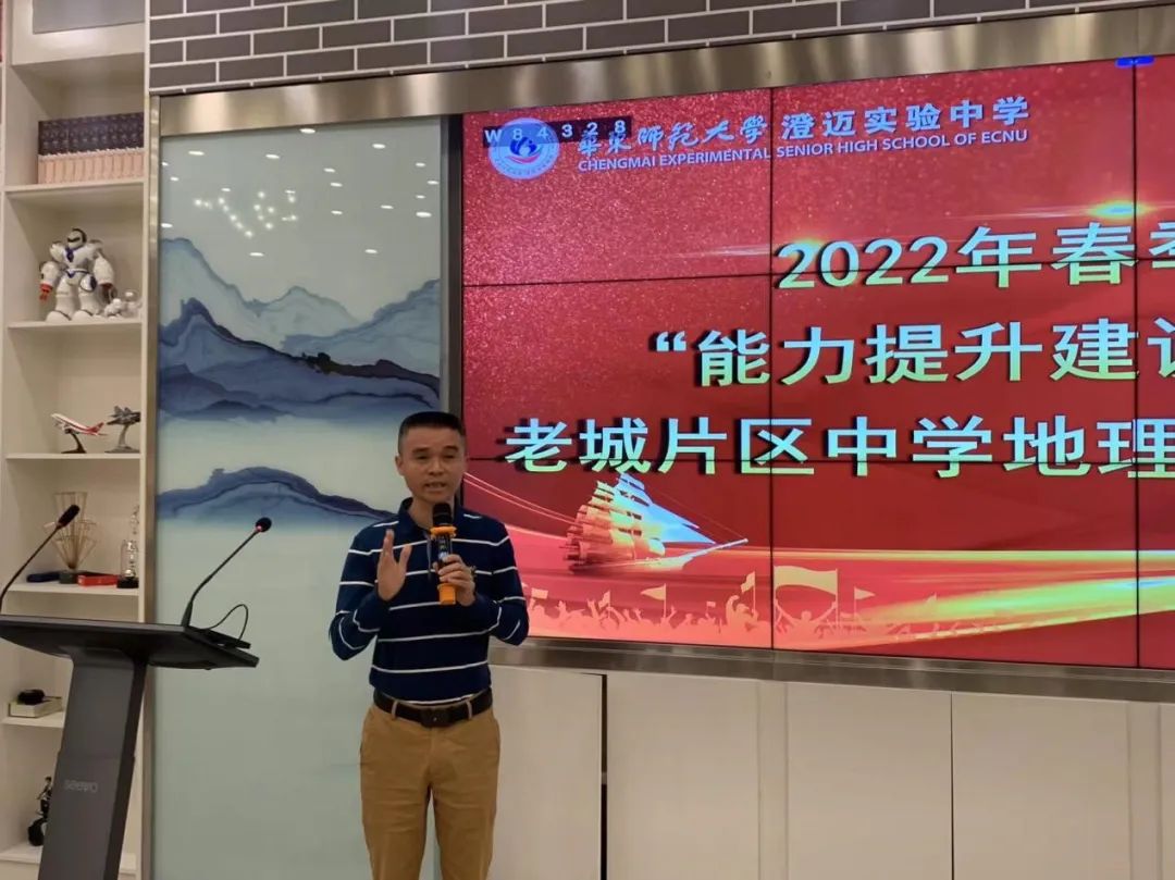 根据澄迈县教师研训中心《关于印发(2021澄迈县中小学、幼儿园县级研训校本化项目实施方案)的通知》精神,2022年5月18日,华东师范大学澄迈实验中学开展了以提升课堂教学能力为主题的《2022年春季澄迈县“能力提升建设年大培训”老城片区中学地理、艺术研训活动》,老城片区初中学校(含九年一贯制学校)的地理、艺术教师参加了活动,县师训中心林尤谊、蔡亲亲、唐雪真、林冰、蒙绪烽等领导专家莅临现场指导。全体参会教师首先在华迈实验中学新空间集中,督学罗家忠主持会议并代表学校致辞,澄迈县教师研训中心培训室主任林尤谊和老城片区负责教研员蔡亲亲分别讲话并对活动提要求。会后,分组开展研训活动。